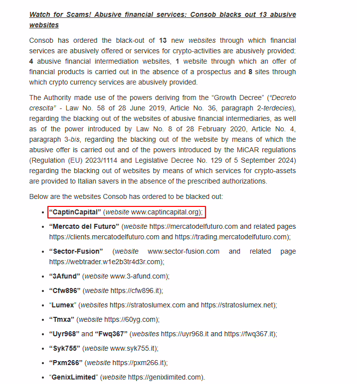 Why Has CaptinCapital Broker Been Blacklisted?